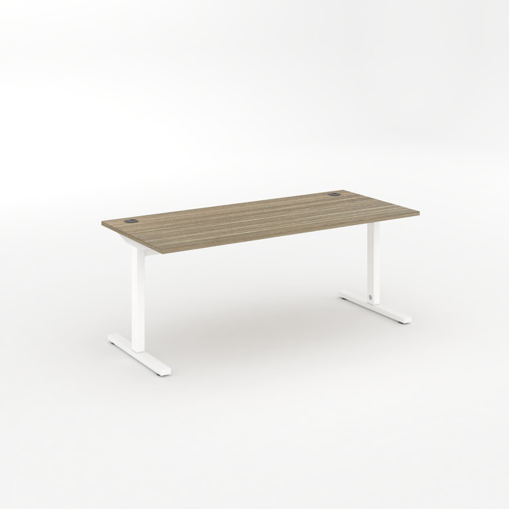 Bureau avec plateau en MDF de 25 mm d'épaisseur avec panneau- chant ABS de 2 mm d'épaisseur - 2 trous pour les passage de câbles (droit et gauche) - Pieds en métal en forme de T - Voile de fond PAS compris - Poutre réglable et système de câblage caché