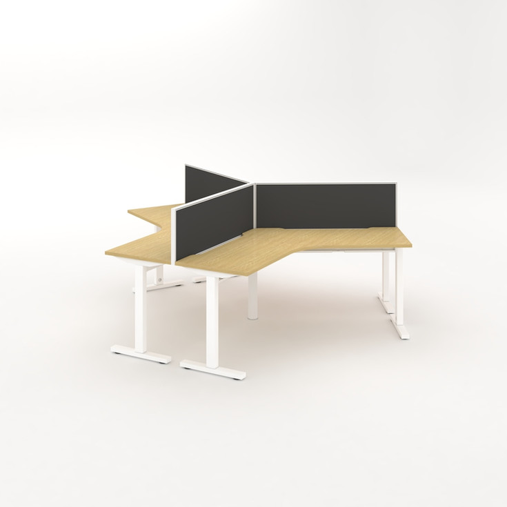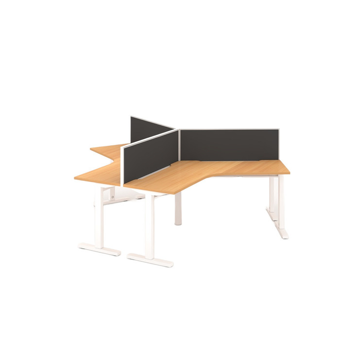 Office desk cluster available for 3 and 4 working stations (More design and dimensions under request) - 25 mm thick MDF top with E1 panel - 2 mm thick ABS edge - 2 cable holes (right and left) - Metal legs with T shape - Modesty panel NOT Included - Adjustable beam and Hidden wire system - Acoustic panels