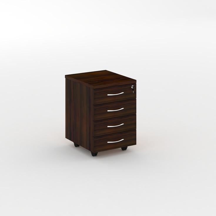 Crafted from sturdy melamine with E1 panel , it features two - three or four drawers that slide on metal runners with end stops. The top drawer is lockable for safekeeping. Swivel casters ensure easy movement. The chest of drawers is completed with elegant shock-resistant aluminium handles.