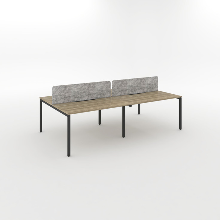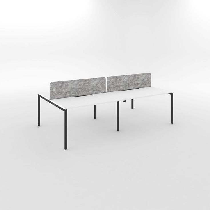 Office desk cluster available in 3 dimensions (More design and dimensions under request) - 25 mm thick MDF top with E1 panel - 2 mm thick ABS edge - 2 cable holes (right and left) - Square metal legs - Modesty panel NOT Included - Acoustic panels