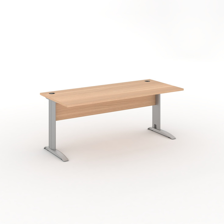 Office desk with 25 mm thick MDF top with E1 panel - 2 mm thick ABS edge - 2 cable holes (right and left) - Metal Legs with T shape - Modesty panel Included