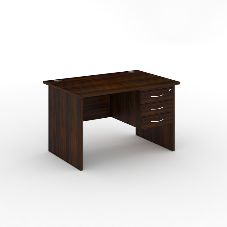 Office desk with 25 mm thick MDF top - 2 mm thick ABS edge - 2 cable holes (right and left) - 18 mm thick side legs - Modesty panel Included - 3 drawers included with lock