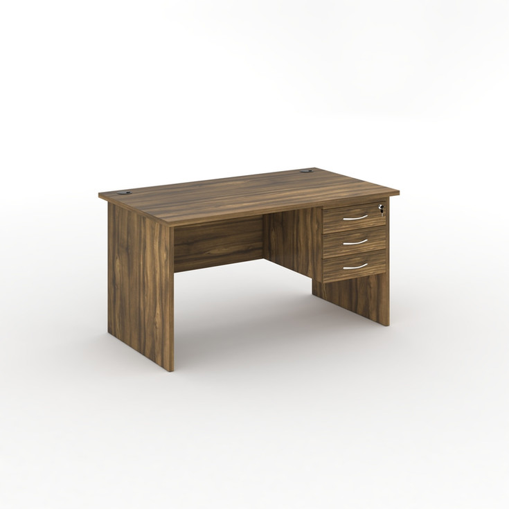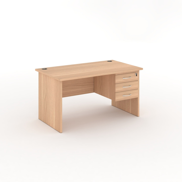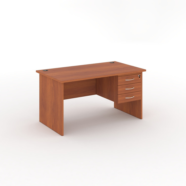 Office desk with 25 mm thick MDF top - 2 mm thick ABS edge - 2 cable holes (right and left) - 18 mm thick side legs - Modesty panel Included - 3 drawers included with lock