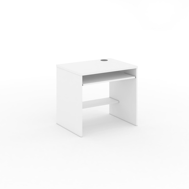 Bureau avec plateau en MDF de 25 mm d'épaisseur avec panneau- chant ABS de 2 mm d'épaisseur - 1 trou pour les passage de câbles (droit ou gauche) - pieds latéraux de 18 mm d'épaisseur - Voile de fond compris - Plateau de bureau coulissant