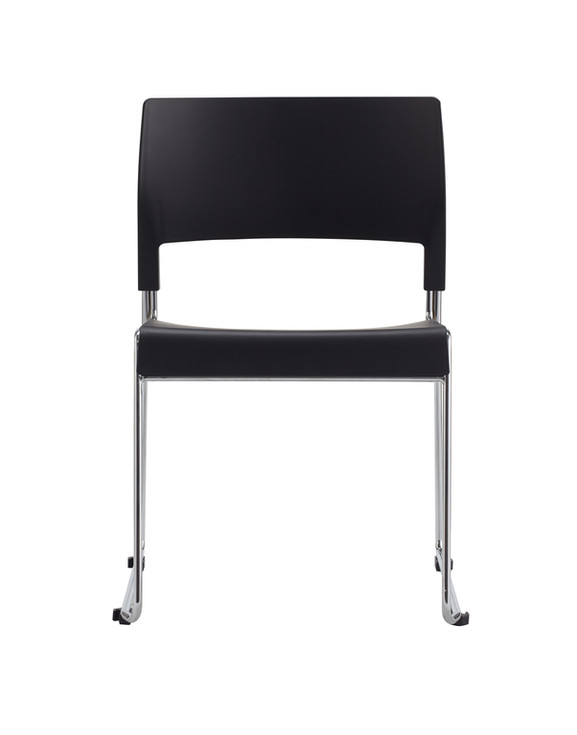 Visitor chair with chromed metal sled structure, 12 mm diameter round tube with 1.5 mm thickness - plastic shell -Frame with connectors with possiblity to link one chair to another