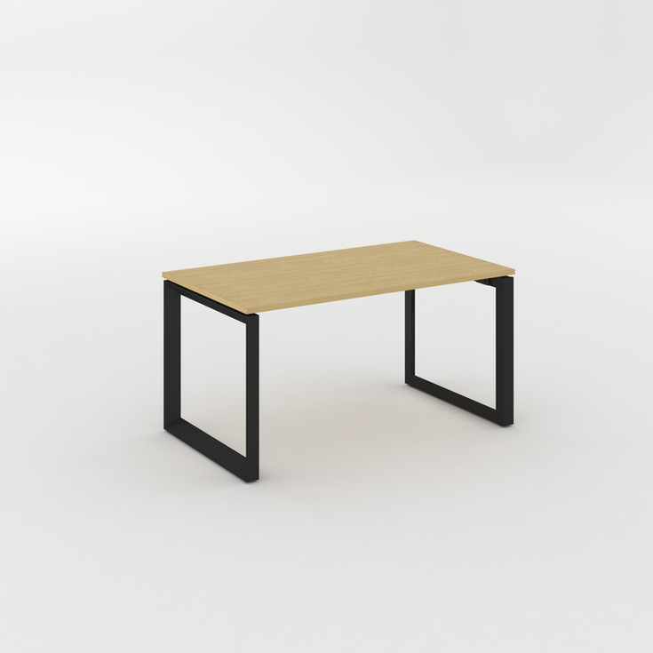Bureau avec plateau en MDF de 25 mm d'épaisseur et panneau E1, chant en ABS de 2 mm d'épaisseur, 2 passe-câbles (à droite et à gauche), pieds pentagonaux en acier en forme de « O » avec embouts réglables, deux traverses fixes sous le plateau - Voile de fond NON compris