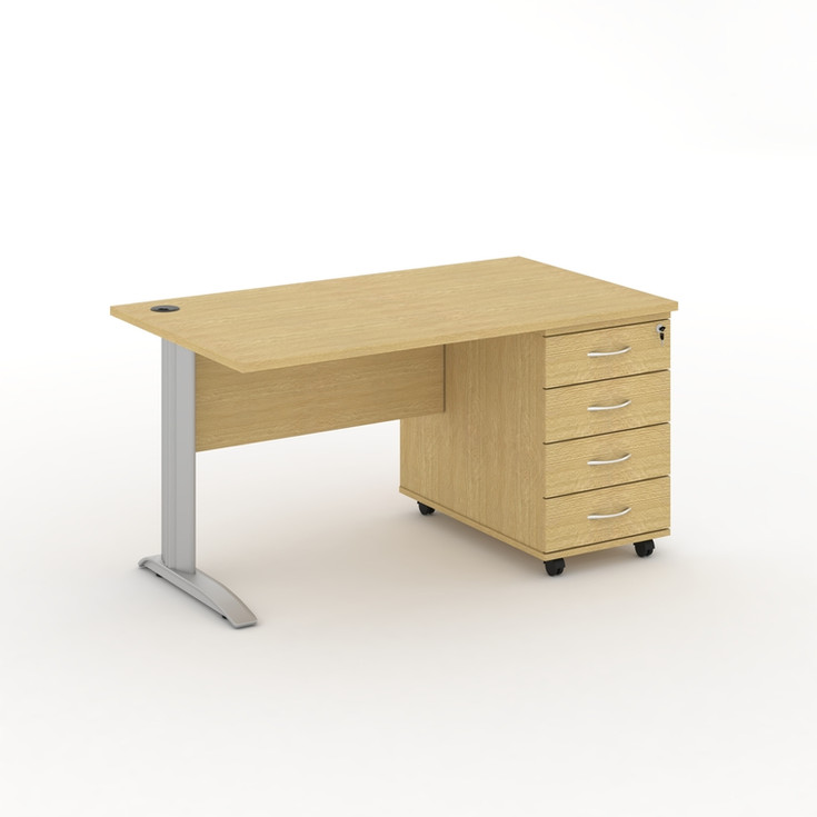 Office desk with drawer - 25 mm thick MDF top with E1 panel - 2 mm thick ABS edge - 1 cable hole (left) - Metal legs with T shape - Modesty panel Included - Fix cabinet with 4 drawers - Key lock - sliding metal hinges for drawers