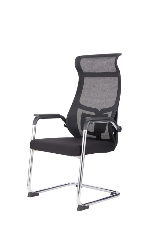 Visitor chair with sled frame . Metal chrome frame 1.8 mm thickness - Cutted foam for seat - Mesh back - Fix chromed armrest with hard nylon plastic cover integrted in the structure - Not adjustable lumbar support