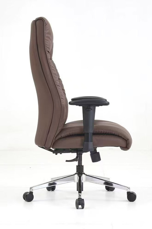 Fauteuil directionnel à dossier haut - Roulettes silencieuses PU Bifma de 60 mm - Piétement en métal chromé rayon 350 mm - Vérin à gaz - Classe 3 - Mécanisme d'inclinaison - Blocable en 3 positions avec système antichoc - Mousse découpée haute densité - Accoudoirs réglables 1D avec coussinet en PU souple - Support lombaire et appui-tête intégrés à la forme
