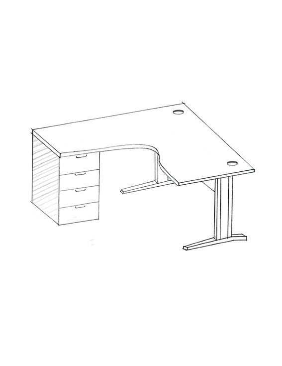 Office desk with return and drawer - 25 mm thick MDF top with E1 panel - 2 mm thick ABS edge - 2 cable holes (right and left) - Metal legs with T shape - Modesty panel Included - Fix cabinet with 4 drawers - Key lock - sliding metal hinges for drawers