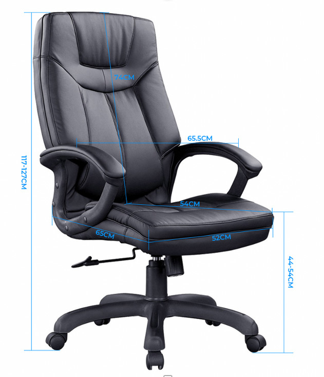 Chaise directionnelle à dossier haut - Roulettes Bifma en PU de 60 mm - Base en nylon rayon 350 mm - Vérin à gaz - Classe 3 - Mécanisme d'inclinaison simple verrouillable en 2 positions avec régulateur de tension - Mousse découpée haute densité - Accoudoir en nylon avec revêtement PU souple