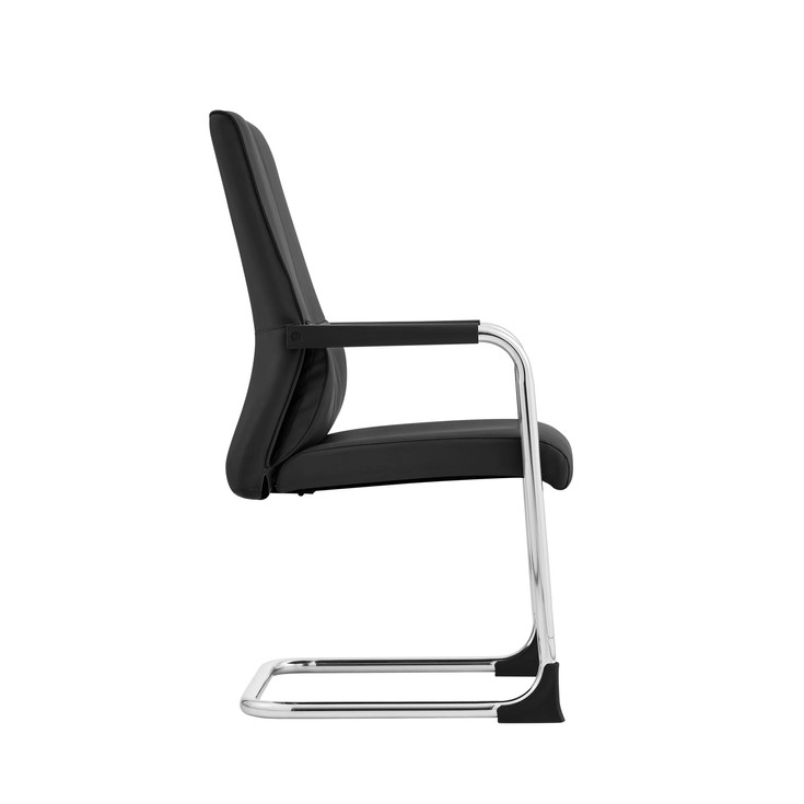 Visitor chair with sled frame . Metal chrome frame 1.5 mm thickness - High quality cutted foam for seat and back - Fix chromed armrest with nylon plastic cover integrted in the structure - anti-tip feet